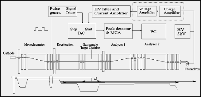 A crossed beam double trochoidal electron spectrometer with a time of flight coincidence technique.